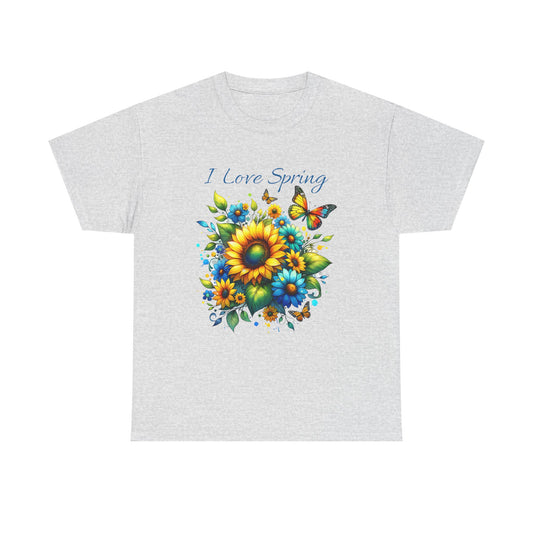 I Love Spring Unisex Heavy Cotton Tee - Vibrant Floral and Butterfly Design