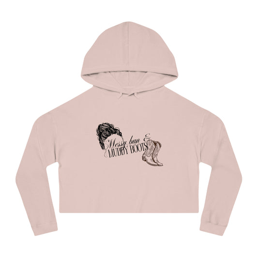 Messy Bun and Muddy Boots Women’s Cropped Hooded Sweatshirt